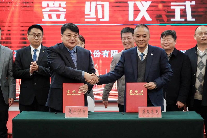 3月1日,芜湖莫森泰克汽车科技股份有限公司与莱州创智新材料科技有限公司的投资签约仪式在烟台莱州市隆重举行。市国资委主任夏峰、公司董事长王津华、副总经理伍运飞等共同出席了本次签约仪式并致辞。